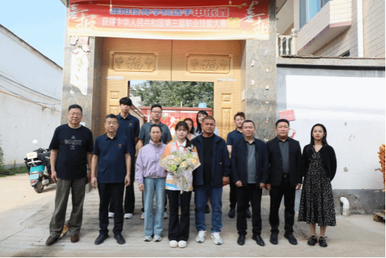送喜报队伍引来邻里乡亲纷纷驻足称赞,现场气氛热烈隆重。在申依鑫家门前,赵苑华书记一行与等候在此的申依鑫家人及内黄县龙庆街道党工委副书记、办事处主任呼永峰,内黄县人才和就业服务中心主任王振清亲切握手,并转达了全校师生的热烈祝贺,对申依鑫老师凭借过硬技能为国赛舞台添彩、为校争光表示高度赞赏。